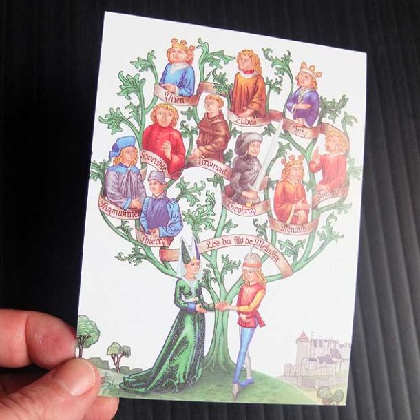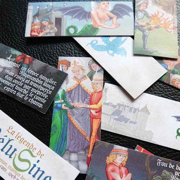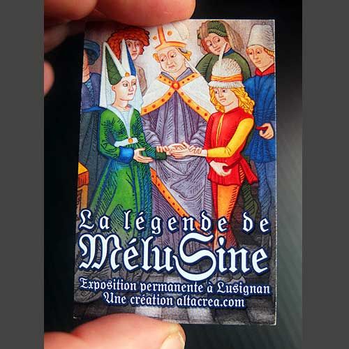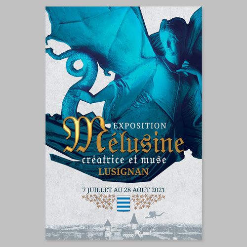 Lorsque ma collaboration avec l'association « Les Lusignan et Mélusine » a débuté, c'est avec respect et enthousiasme que j'ai voulu retranscrire la célèbre légende. C'est donc à partir des textes confiés par l'association que j'ai créé les nombreux panneaux de l'exposition permanente. Un graphisme s'inspirant des nombreuses images illustrant le livre de Jean d'Arras ainsi que des parchemins et documents de son époque moyenâgeuse.